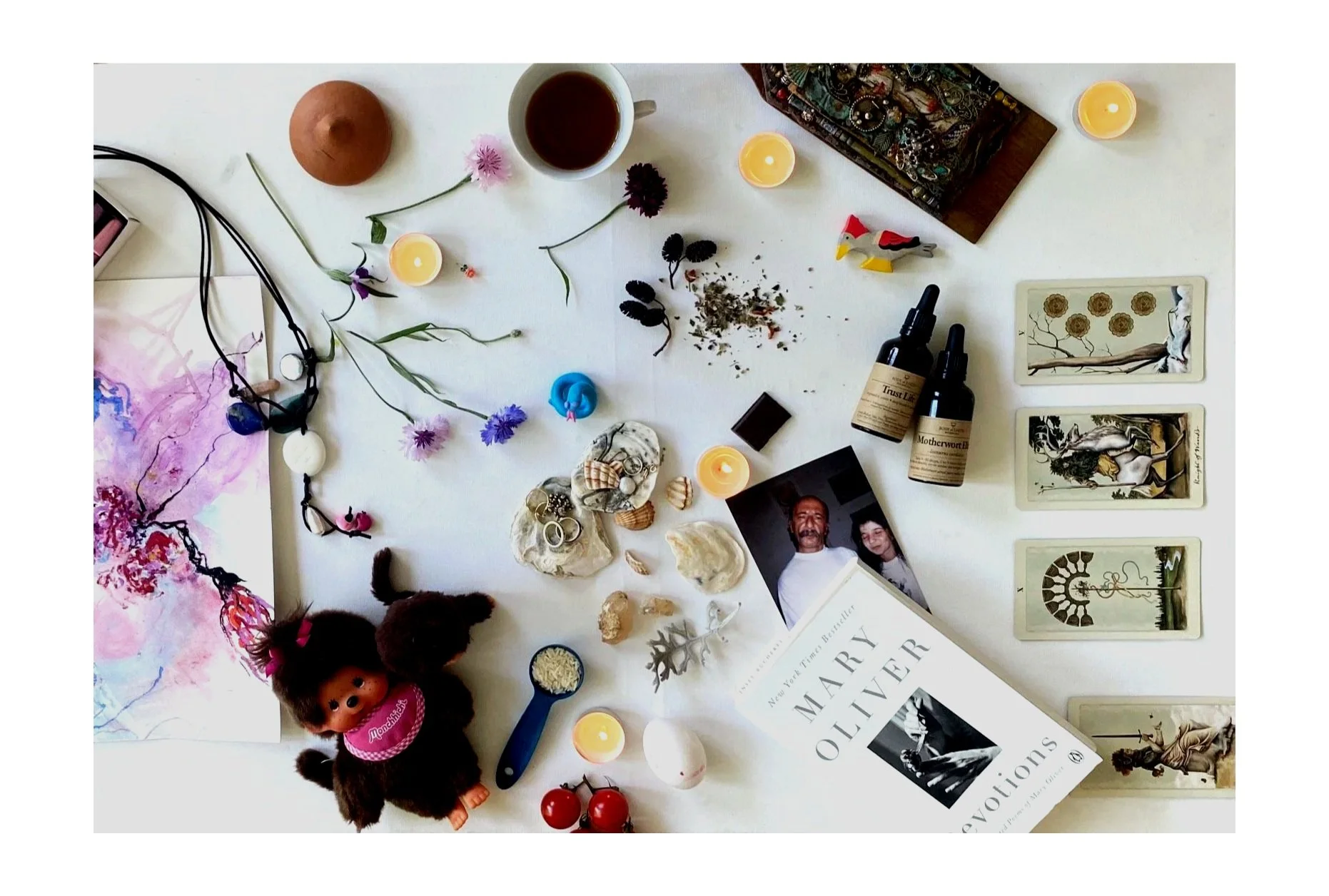 We will come together to co-create a large mixed media artwork on a shared canvas. Using a variety of materials, such as pastels, pencils, watercolors, collage, threads, fabrics, papers, beads, glitter, and more, we will each add our own expression to a collective piece. The gathering will begin and end with a gentle ritual to help us arrive, connect, and get into the flow as well as close with a sharing circle. Most of our time will be dedicated to creating, following attractors, intuition and curiosity.